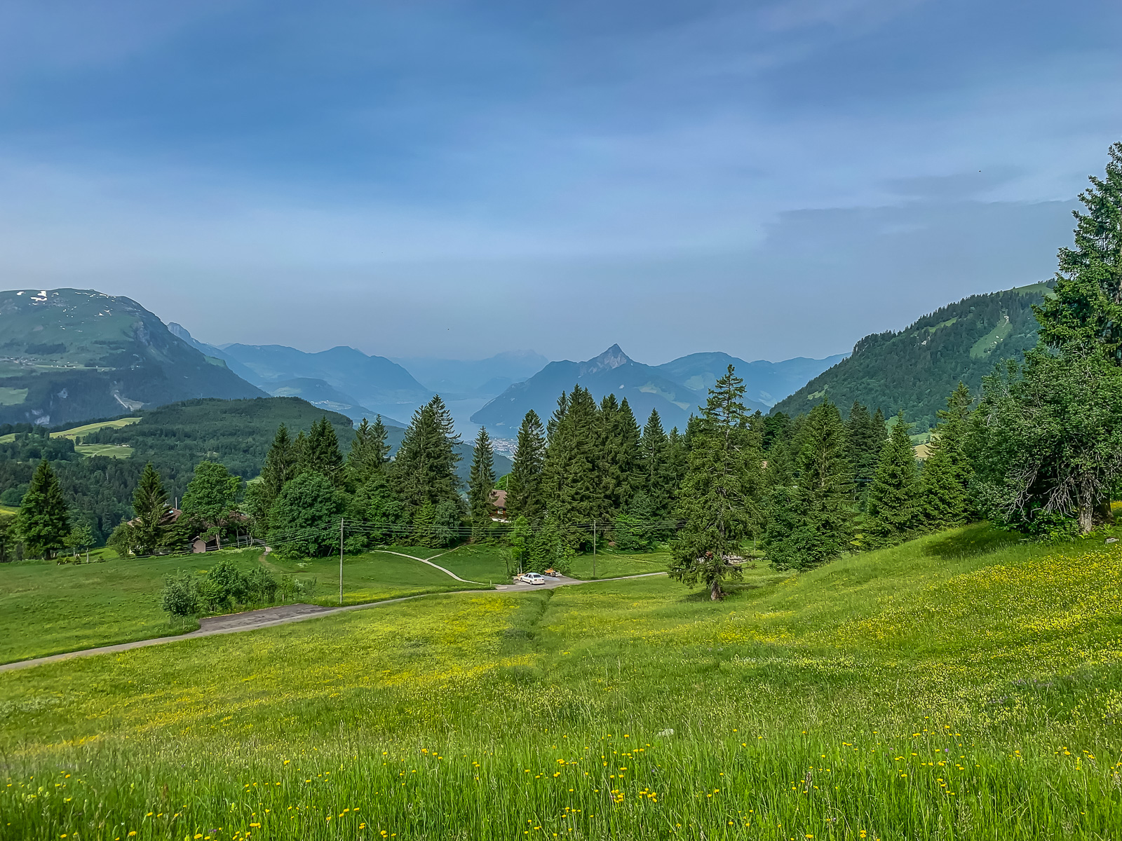 Am Glaubenbielen Blick voraus zum Pilatus und Stanserhorn