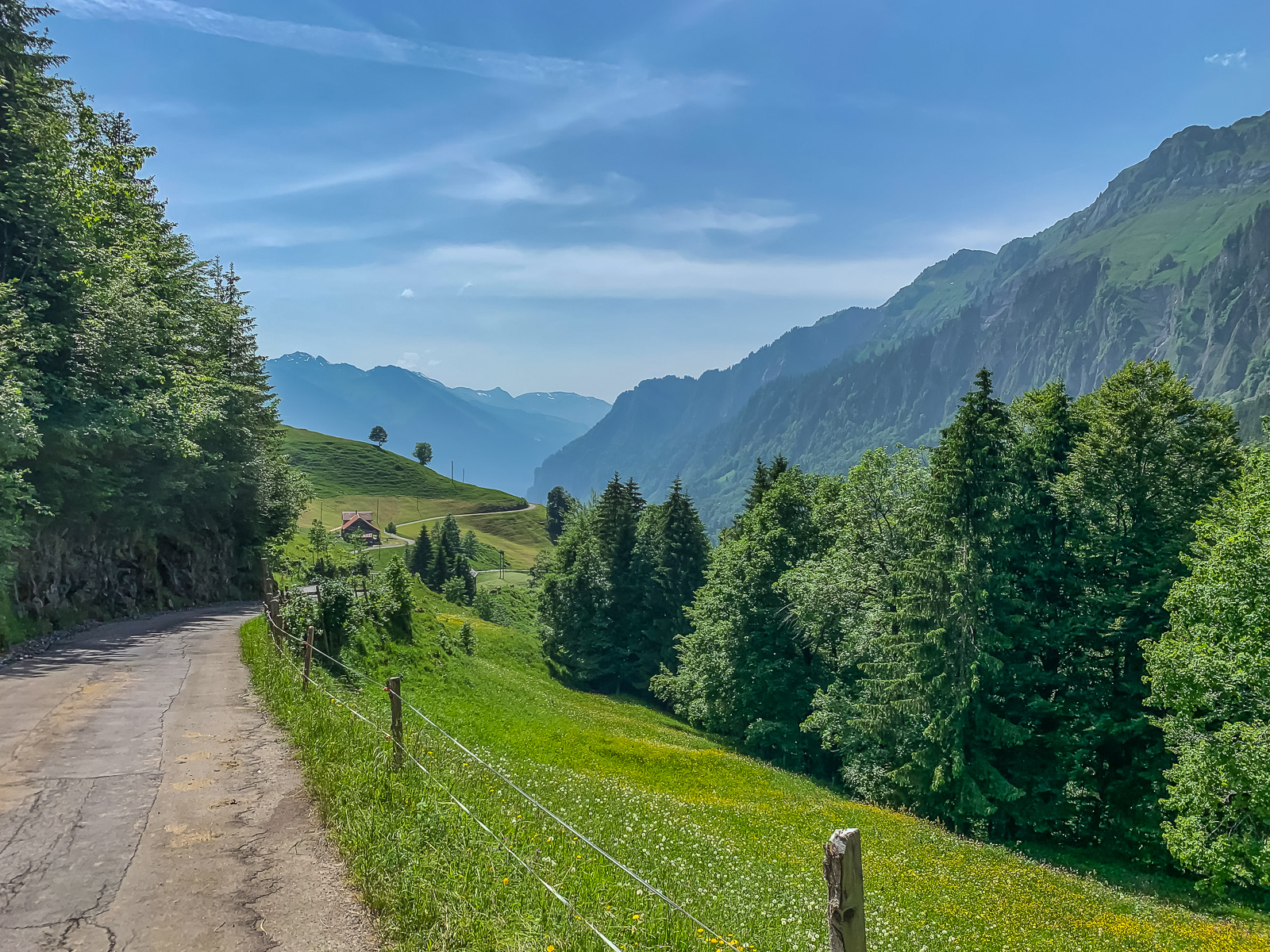 Hinab geht es auf schlechter Straße nach Muothatal