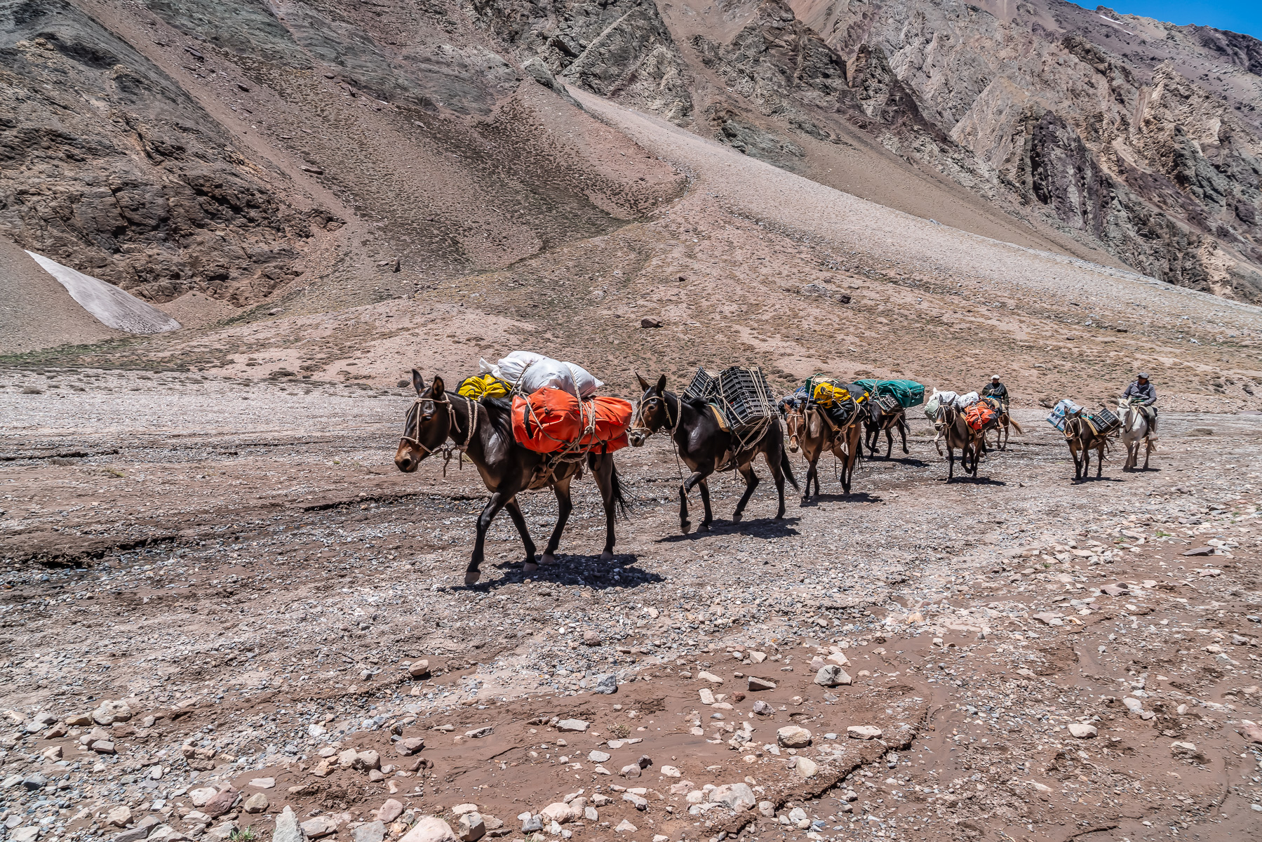 Der lange Marsch zum Basislager DIe Mulis laufen uns voraus.