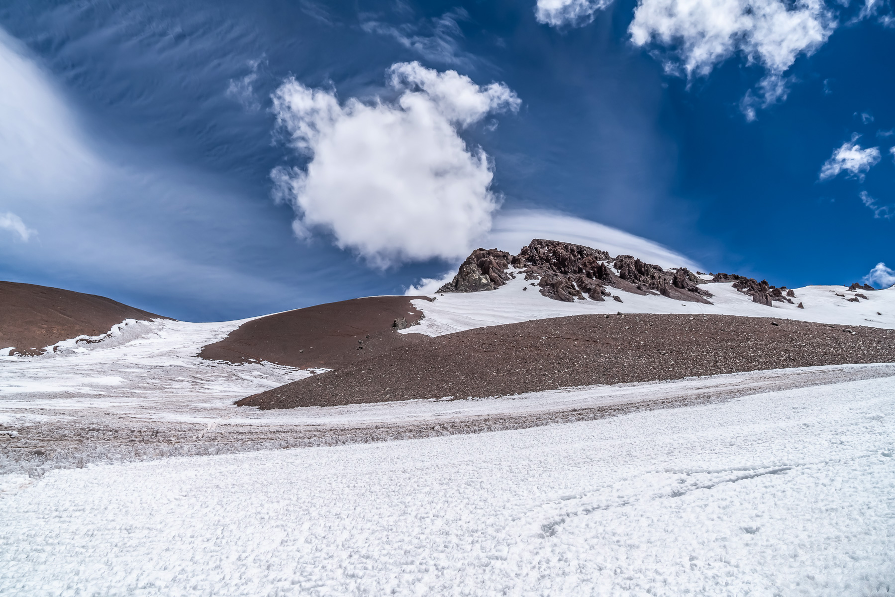 Cerro Arenas (3.460 m) Wolkiges Gipfelpanorama