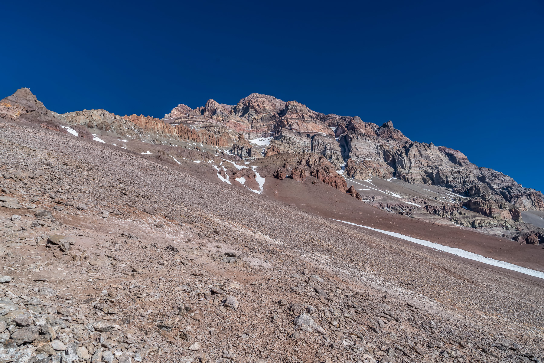 Nido de Cóndores (5.520 m) Blick in die sanften Nordwände des Aconcagua