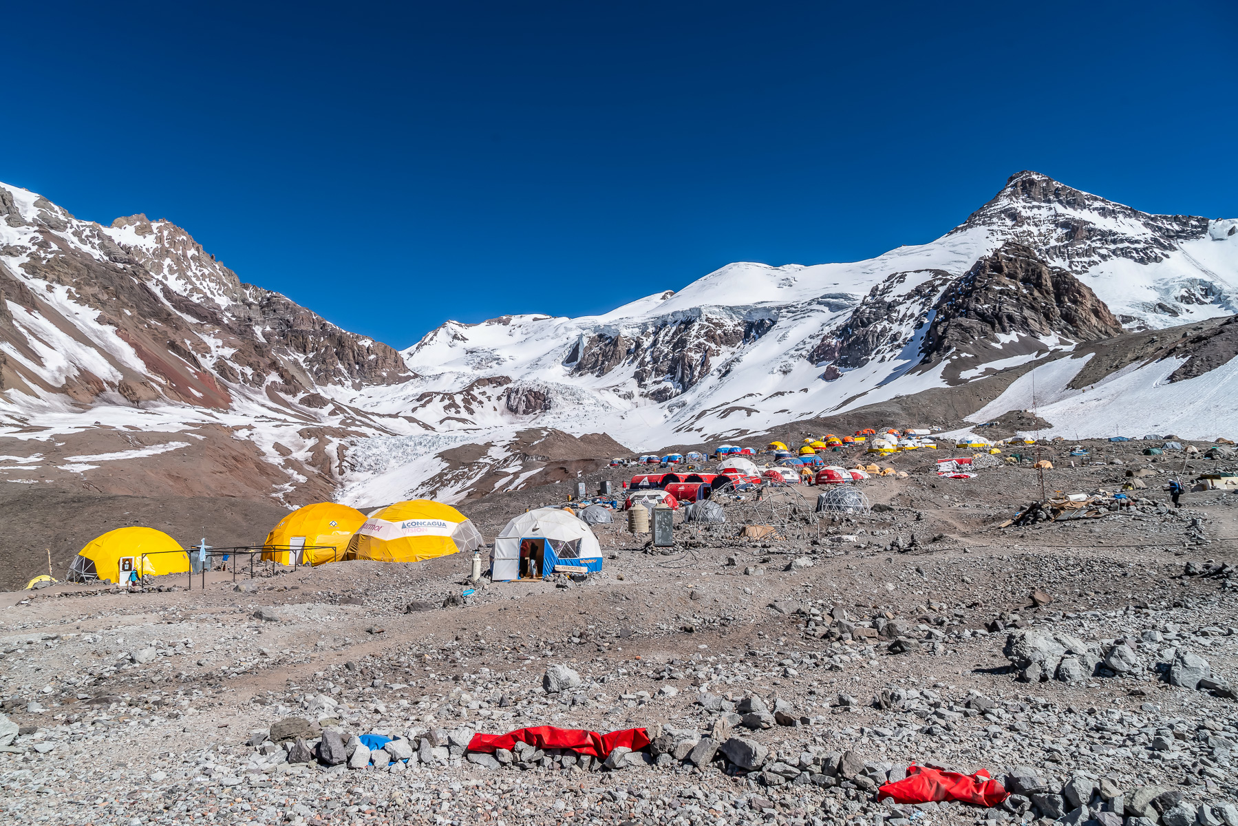 Nido de Cóndores (5.520 m) Das große Hochlager am Aconcagua