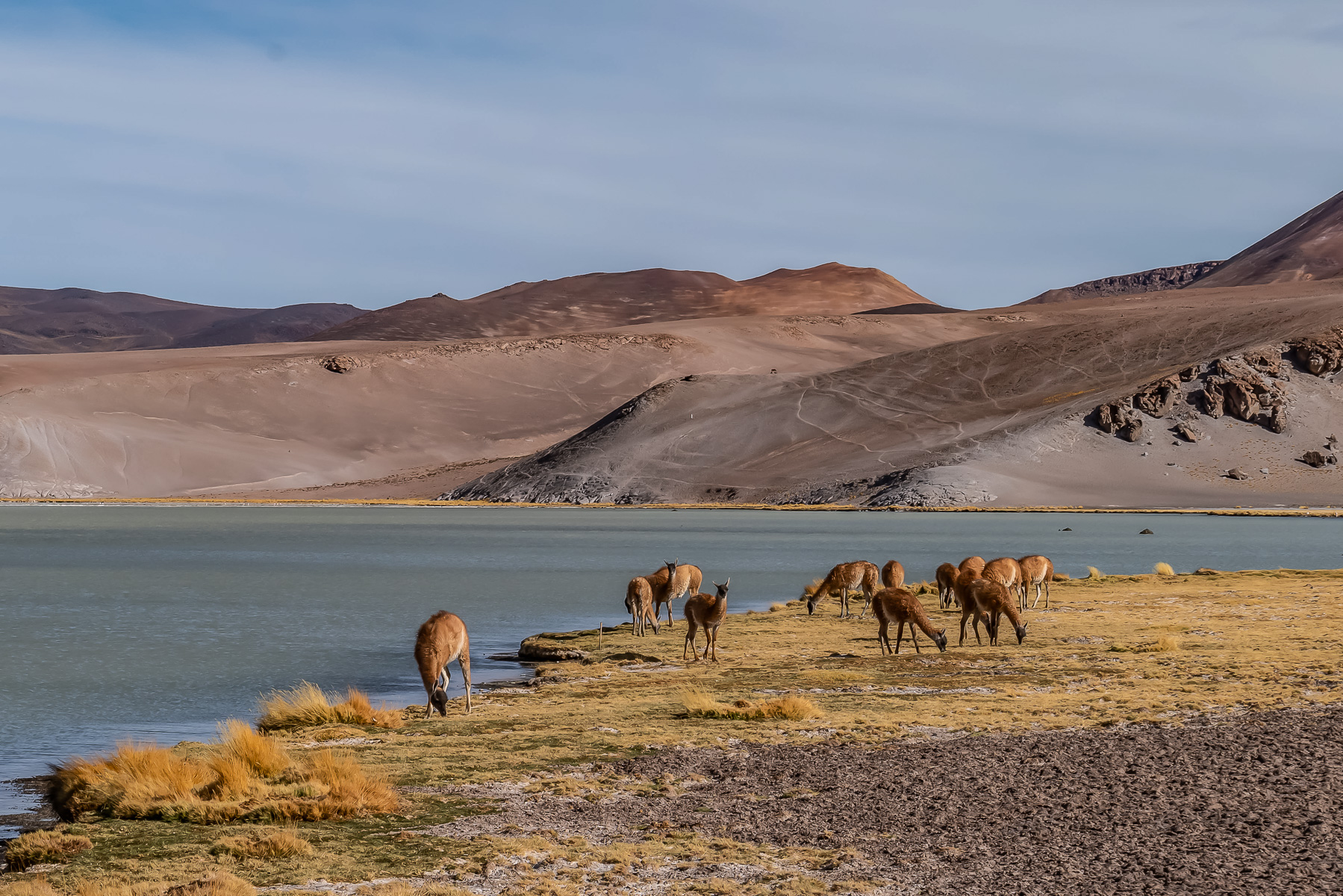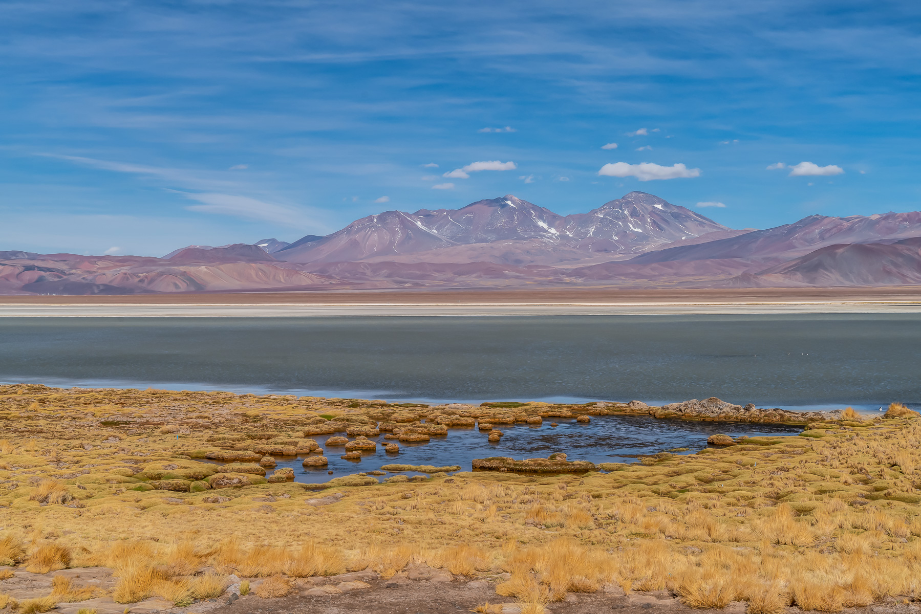 Laguna Santa Rosa (3.785 m) Das Panorama zum Refugio Maricunga